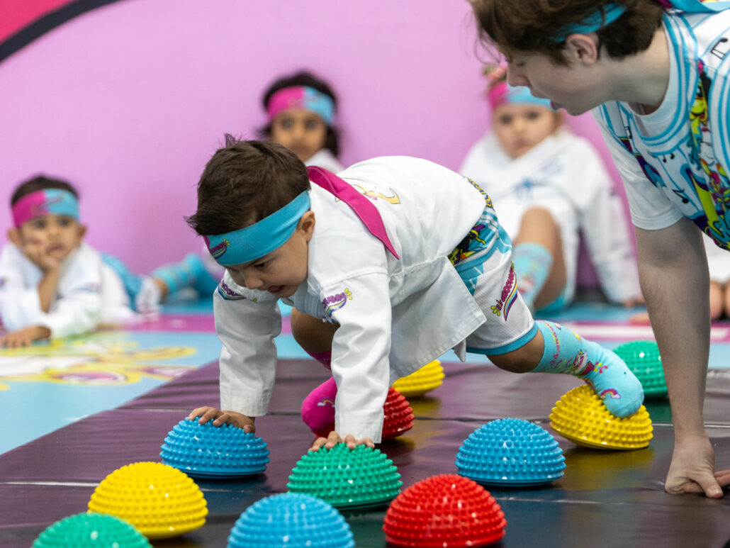 In each class, your child crawls, balances, jumps, rolls and navigates obstacle-style activities that build coordination, strength and body awareness. These movement experiences help children learn how to follow directions, take turns and participate confidently, skills that support school readiness.